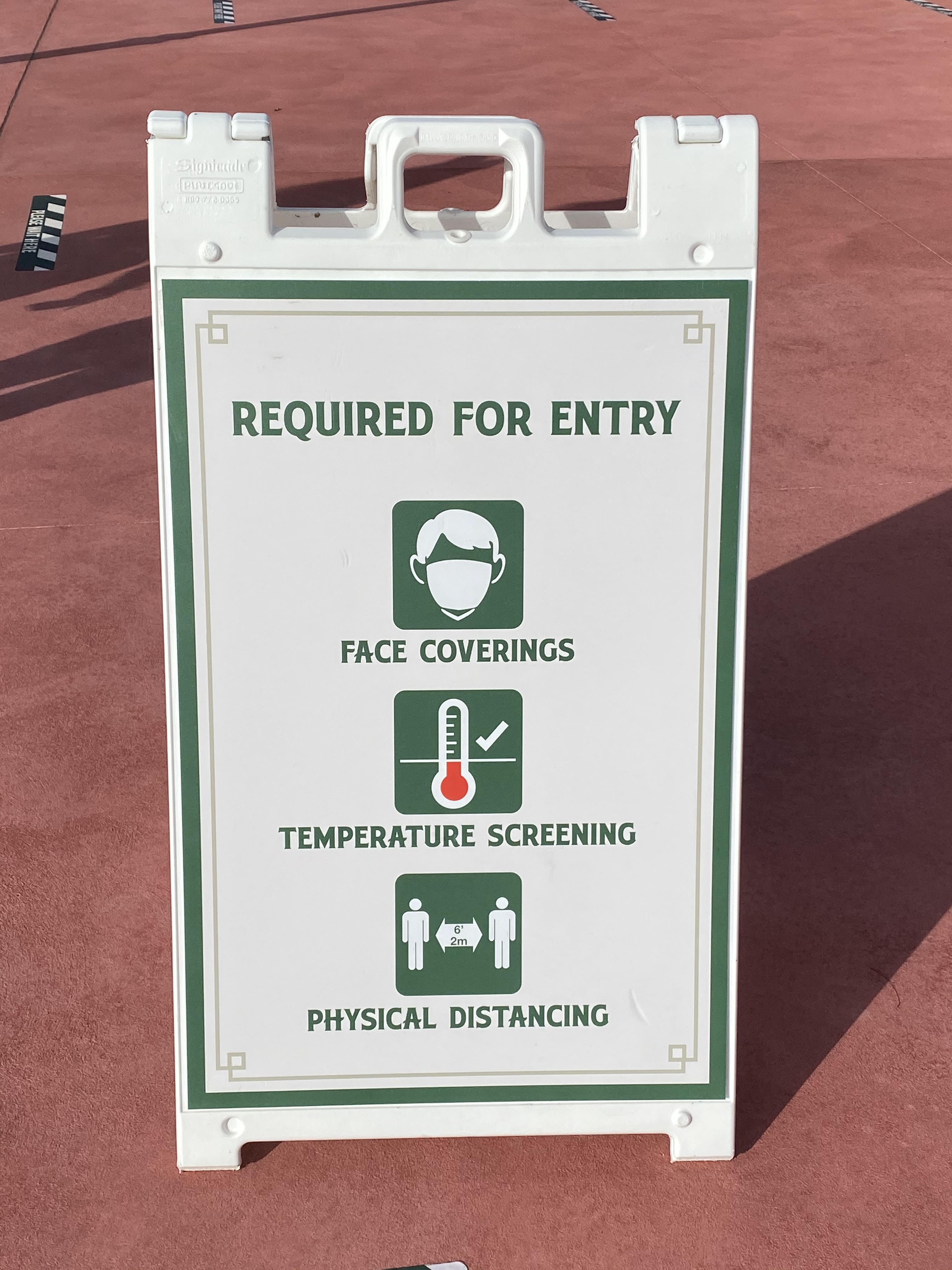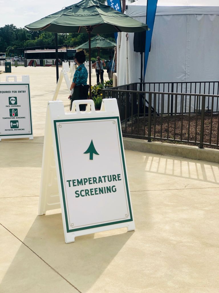 Prior to entering any of the parks or Disney Springs, guests are required to have their temperature taken via a touchless thermometer administered by AdventHealth employees. You must have a temperature of 100.4 degrees or less to enter. While this process may seem intimidating, it was honestly no big deal. Everyone we interacted with during this process was quick & professional. I personally didn’t witness anyone getting pulled aside because their temperature was too high. I’m sure it happens, but we didn’t witness it. For me, it was one more level of protection. We knew that everyone in those parks was not currently showing a temperature. While that’s not a guarantee they aren’t sick, it’s a good indicator & it was comforting to know that piece was in place. It took literally seconds to do & then we moved on with our day as normal.