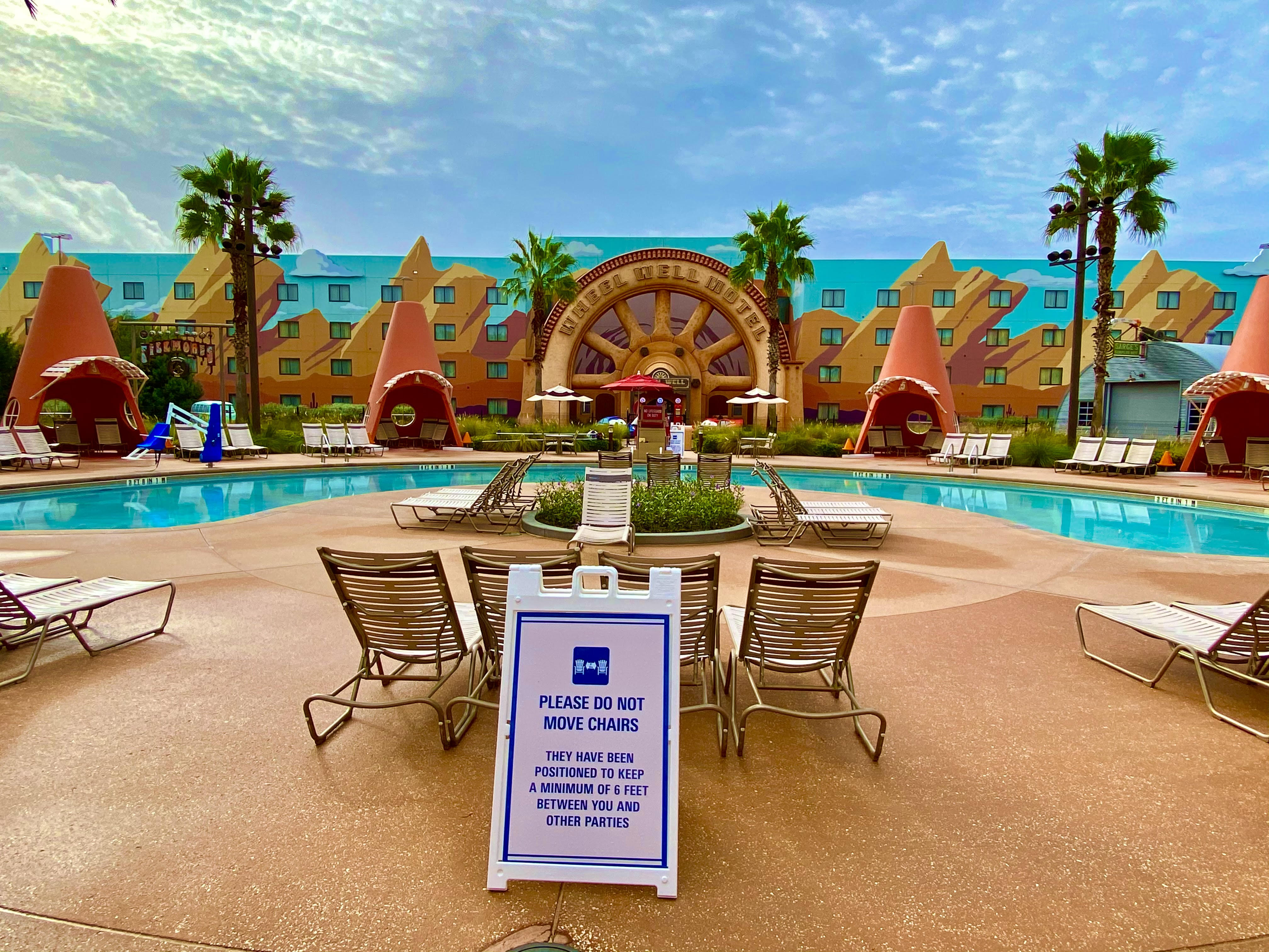 Occasionally, we would notice the queue of a ride stop for a few minutes. We learned that it was during these times that the ride operators were cleaning the ride vehicles. They were quick & efficient & it never slowed us down much. In fact, it was just one more thing that made our experience more comfortable. We also witnessed cast members disinfecting tables & chairs between uses, railings being sanitized, garbage cans tied open & many other procedures that made it obvious they were trying their best to keep everything as clean as possible.