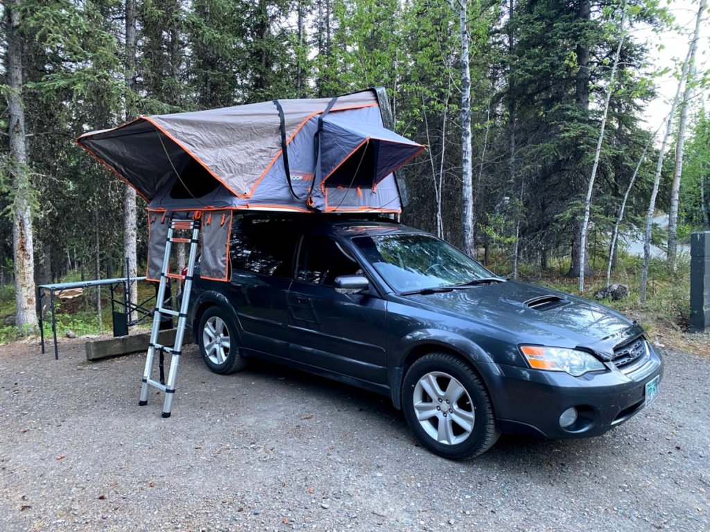 At that point, I thought Alaska was going to be a bust. However, we started getting creative in how we looked for a car. There are several websites out there where you can rent a car from an individual rather than the normal big businesses like Alamo, Enterprise, etc. But again, NOTHING was available. So, then we started looking at RV rental websites & we found someone renting their 2007 Subaru Outback & it came with a rooftop tent & camping supplies. They were renting it for a much more reasonable price of $500 for four days, so our trip was saved! Plus, we figured since it came with camping gear, we’d give camping in the interior of Alaska a try.