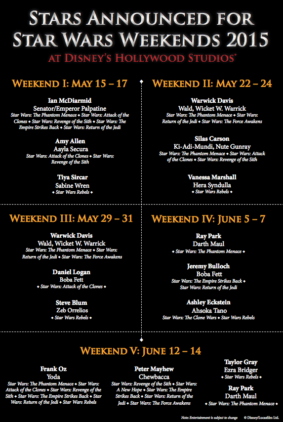 Celebrities and Entertainment Announced for Star Wars Weekends 2015 at Disney’s Hollywood Studios
