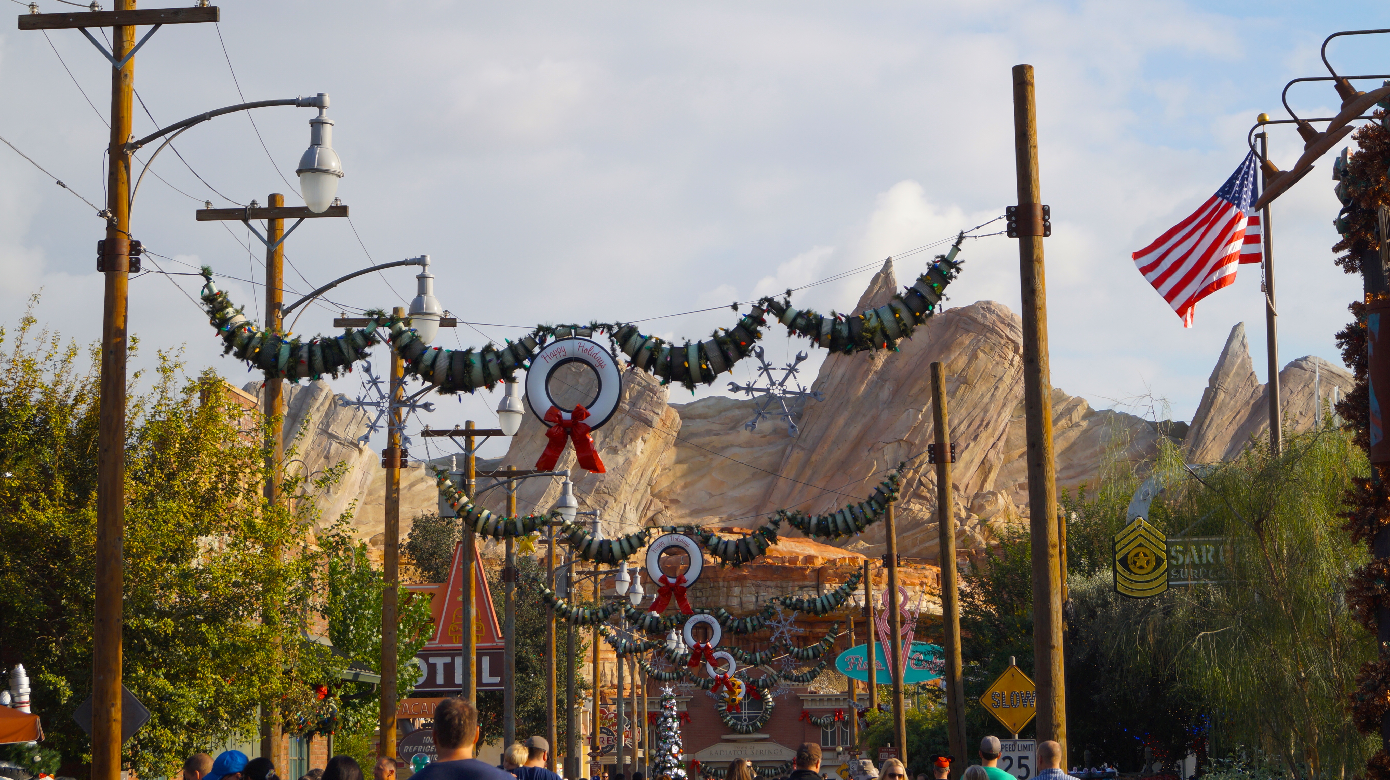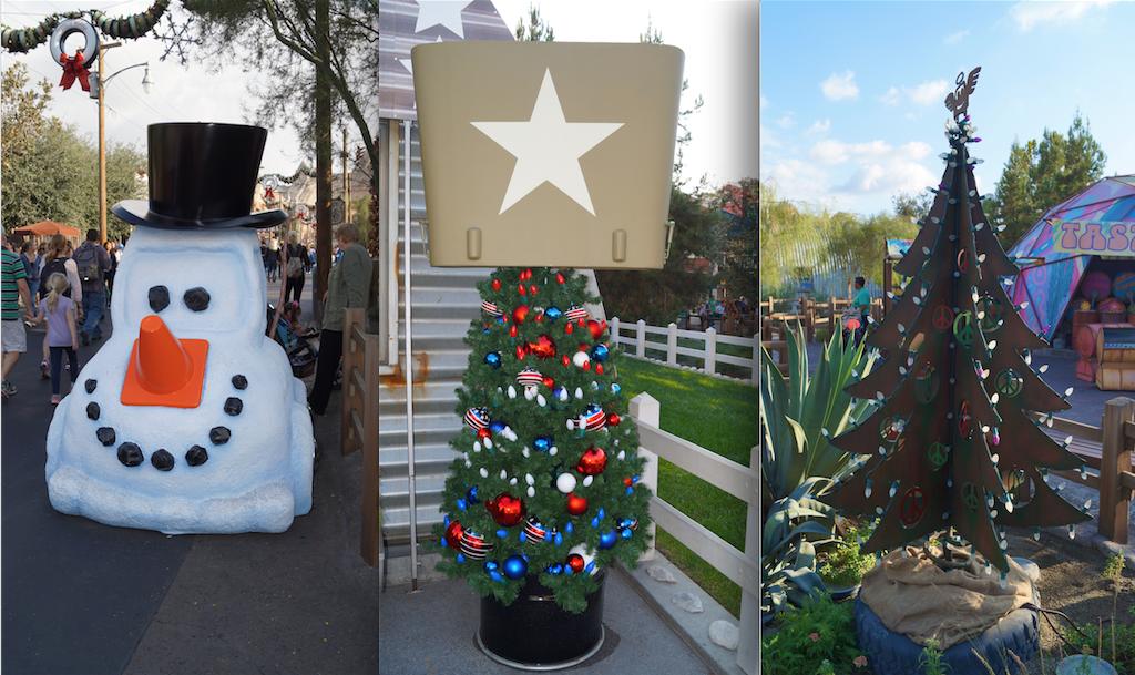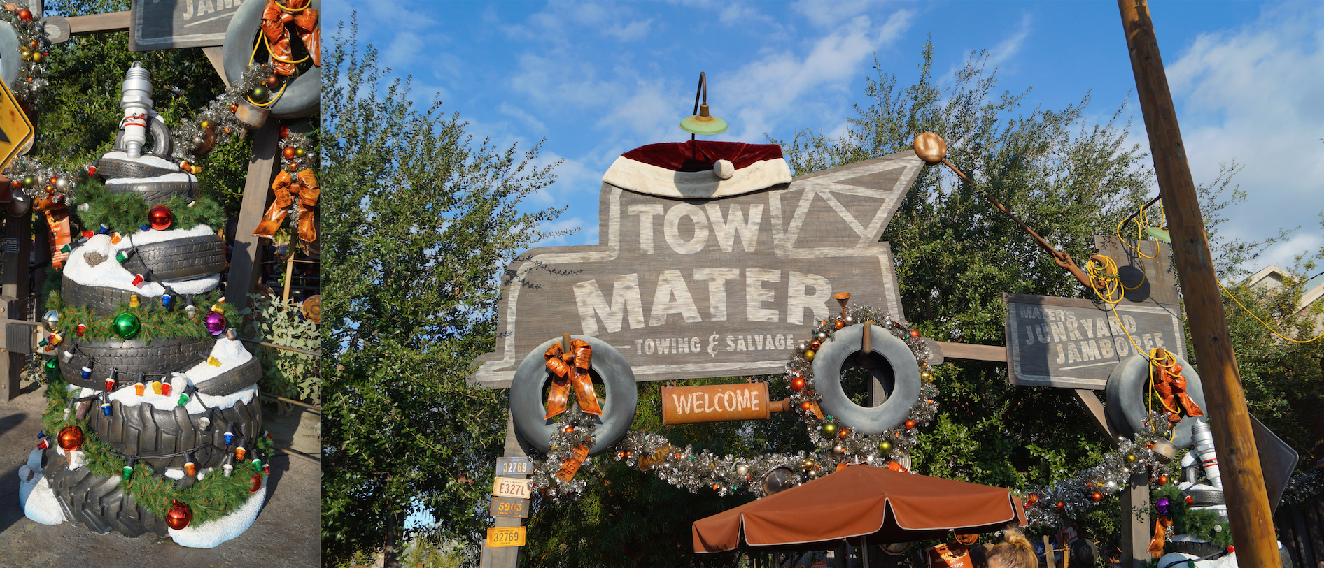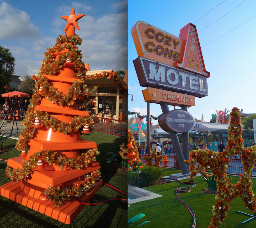 Cars Land is probably the most decorated area in any of the parks between both Walt Disney World and Disneyland. It doesn’t matter where you turn there are creative and fun decorations everywhere. My favorite thing to do in Cars Land during the Holidays is find all the creative trees put up around the area. I think my favorite tree is Sally’s Construction Cone Tree with Lizzie’s Route 66 Signs tree in a close second. All the trees are pretty amazing so make sure you take the time to look through the pictures below and decide which one is your favorite. If you will be in the parks this holiday season, I would also recommend making sure to go back and explore Cars Land at night because it is a totally different experience with all the neon lights turned on. For those not visiting the parks this season, take a look at the pictures below and enjoy! Merry Christmas and Happy Holidays.