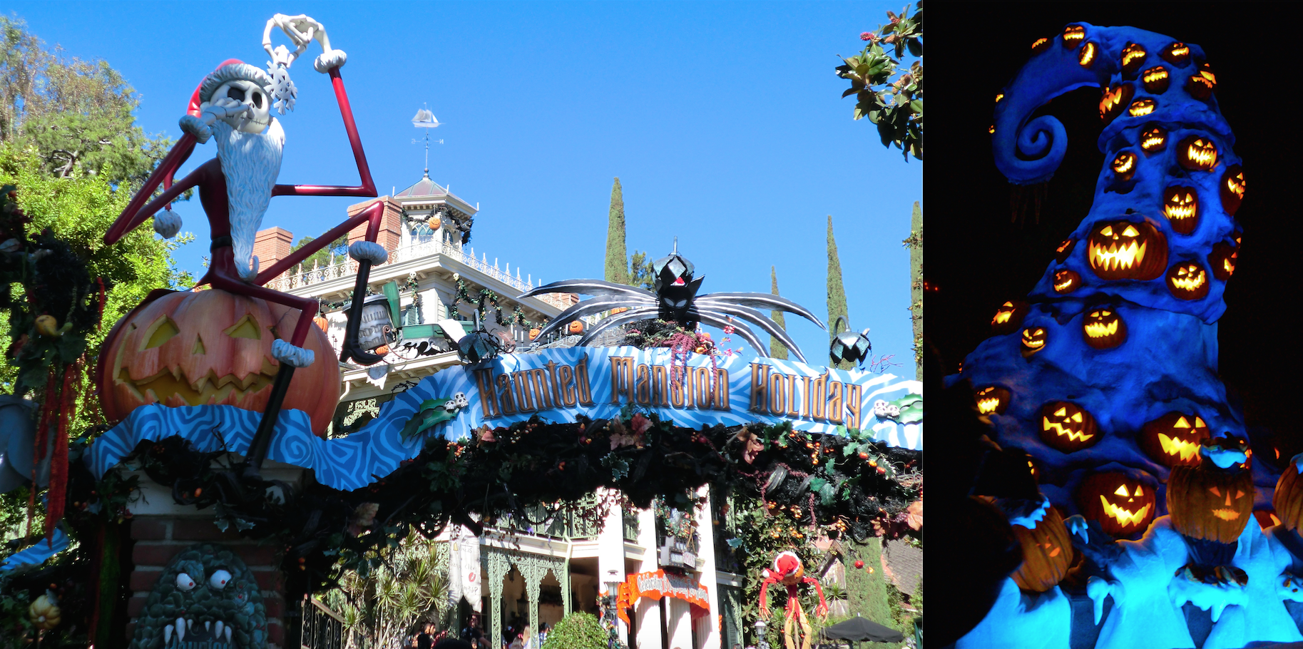 Each year, for both the Halloween and Christmas Seasons the Haunted Mansion is transformed to the theme of Tim Burton’s ‘Nightmare Before Christmas.’ This transformation makes the Haunted Mansion one of the most popular attractions in the park during the holidays. It is definitely on the top of my list of must-sees each year. Notice the ginger bread house in the main ballroom of the attraction. The bakers at the Disneyland Resort come together each year to create an original gingerbread house. Last year’s gingerbread house was perched on a tall and spindly mountain featuring a flying Zero and a ghost train. At 9 feet tall, it was one of the tallest they’ve ever built.