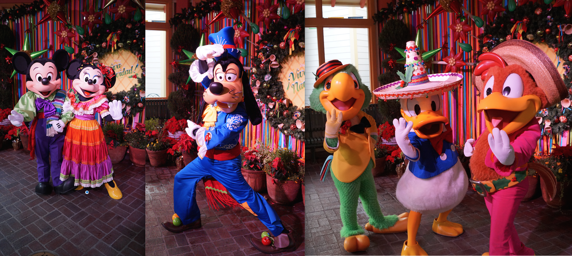 Join your favorite three amigos, Donald Duck, Panchito from Mexico and Jose from Brazil in their high-spirited celebration street party. This party focuses on Latin American traditional songs, dancing, and the larger than life 12-foot-tall mojiganga puppets of Santa and Mrs. Claus. Of Course, no Disney celebration is complete without Mickey and Minnie Mouse in attendance. You will definitely find yourself dancing and singing along with everyone. This fun celebration takes place daily several times throughout the holiday season. Between these celebrations you can actually meet the three amigos along with Mickey, Minnie and Goofy all dressed in their Latin Christmas outfits. Check the daily times guide for specifics.